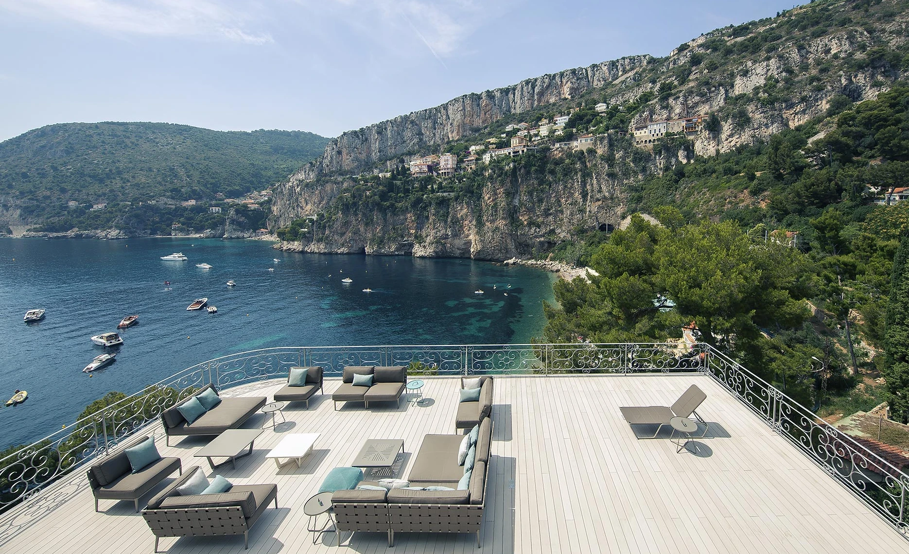 Beautifully situated on the edge of a cliff, overlooking the Mediterranean Sea and Cap Ferrat, this villa is the most glamorous property in “The Private Collection.”